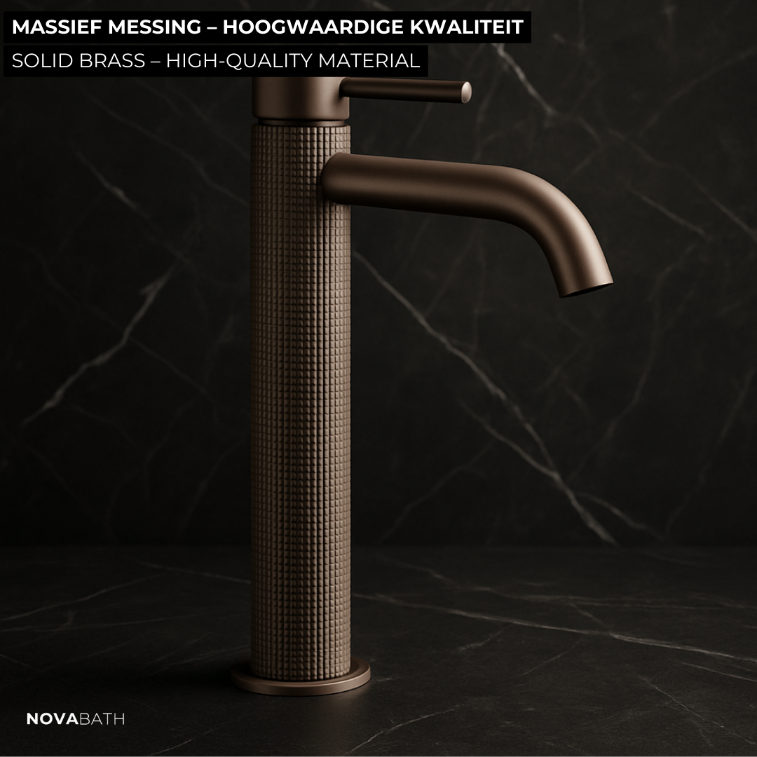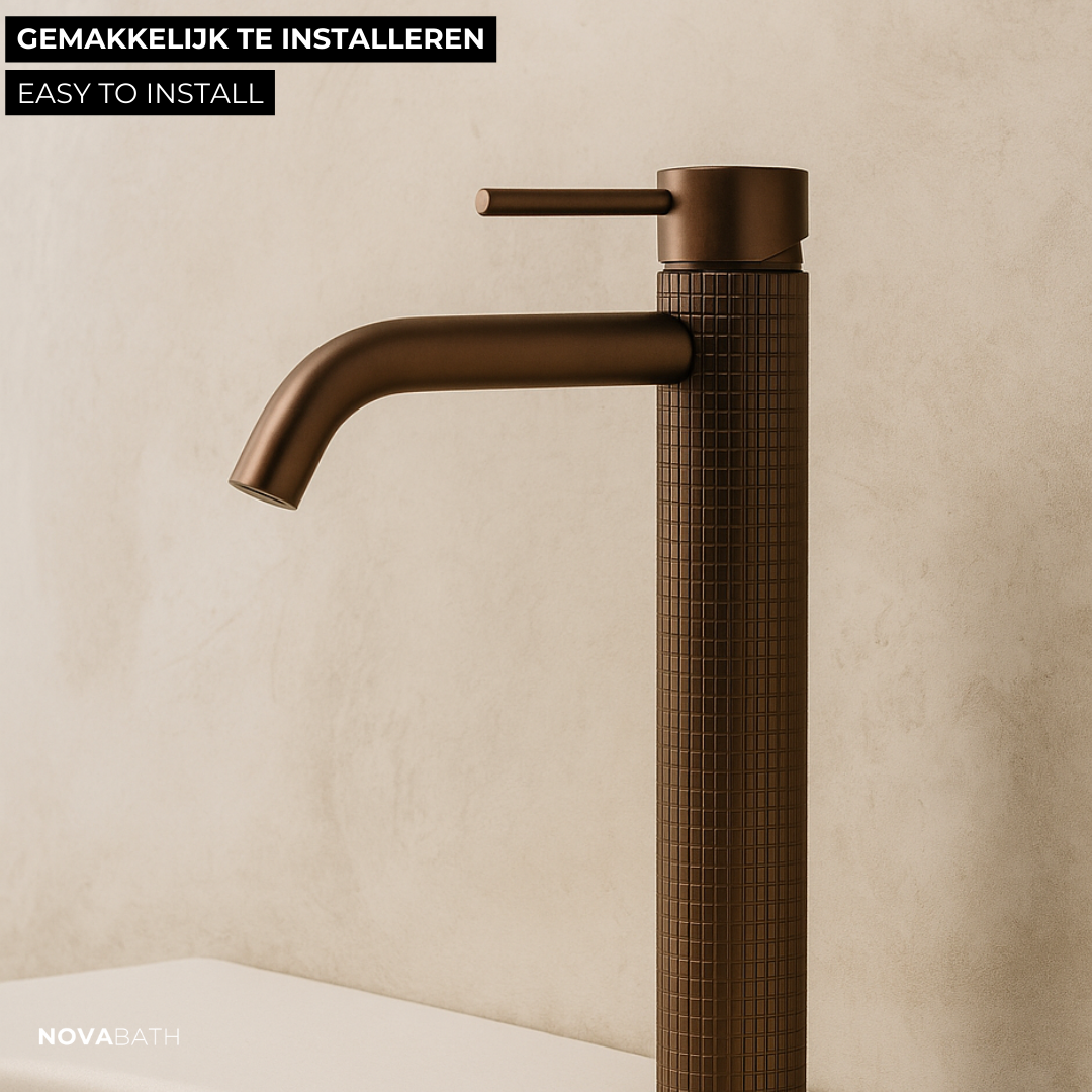 De hoge wastafelkraan van NovaBath combineert verfijnd design met uitzonderlijk gebruiksgemak. Door zijn elegante hoogte en hoogwaardige afwerking voegt deze kraan een stijlvol accent toe aan je wastafel, zonder concessies te doen aan functionaliteit.