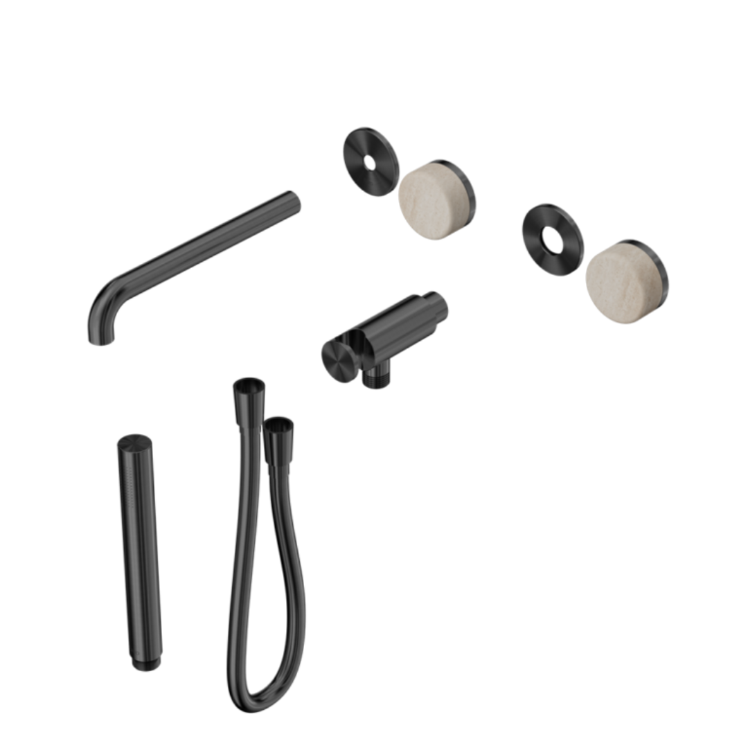 Inbouw badmengkraan Sorrento - Rome Travertine - Staafhanddouche en uitloop - Zonder achterplaat - Gun metal grey