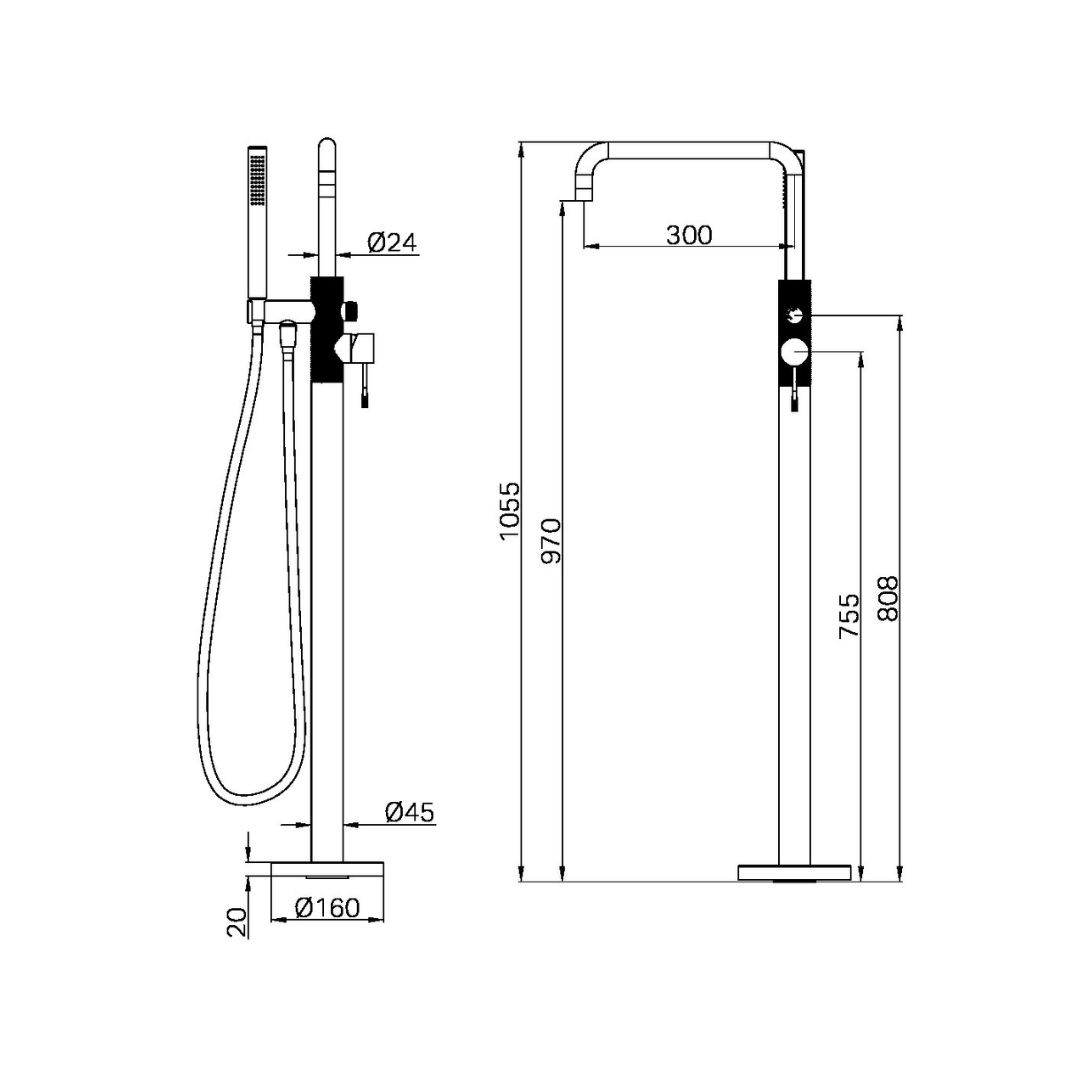 Vrijstaande badmengkraan Valencia - Staafhanddouche - Brushed nickel